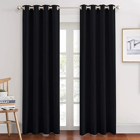 ارت تكس - ستائر تعتيم بلاك اوت عازلة للحرارة بحلقات للتثبيت من ارت تكس لغرفة المعيشة وغرفة النوم 2 قطعة بلون أسود مقاس 1.40 م عرض × 2.60 م ارتفاع