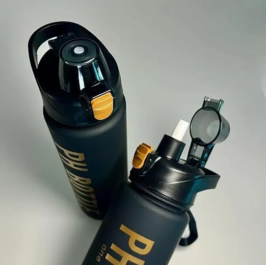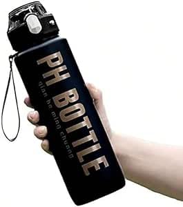 Generic - زجاجة ماء تحفيزية منلوكي بوي سعة 1 لتر مع محدد للوقت وشفاطة، من مادة التريتان وخالية من البيسفينول أ، زجاجة مياه رياضية قابلة لإعادة الاستخدام للجيم والمكتب والتمارين الرياضية - بلون أسود