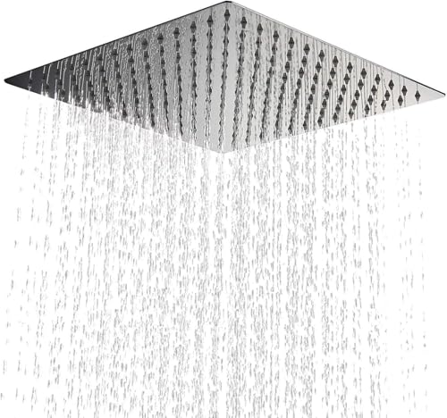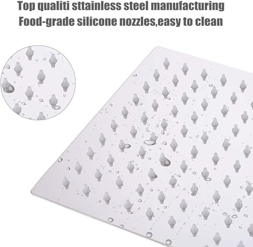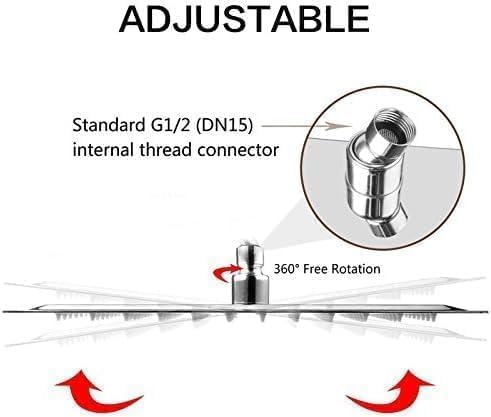 Generic - مستلزمات حمام (راس دش 25 سم بتصميم مربع من الستانلس ستيل عالي الضغط مع فوهة سيليكون)