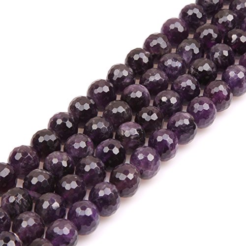 generic - خرز سائب من الاحجار الكريمة الطبيعية اميثيست من جيم -انسايد، تصميم دائري 10 ملم، خرز للطاقة والاستشفاء متعدد الاوجه ومن الكريستال لصنع المجوهرات - 15 انش