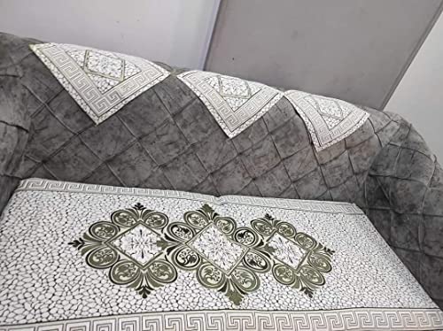 Generic - طقم بياضات انترية من 10 قطع - لكنبتين مع 6 مناديل - بلون اوف وايت، خامات متعددة , مقاسات متعددة