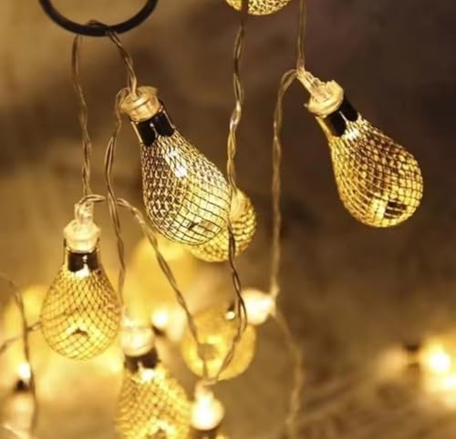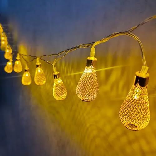 - تصميم فريد وعصري: 10 قطع على شكل قطرات مزينة بشبكة معدنية ذهبية تخلق أنماط إضاءة ساحرة وظلال جميلة على الجدران والأسطح لأجواء دافئة ومريحة