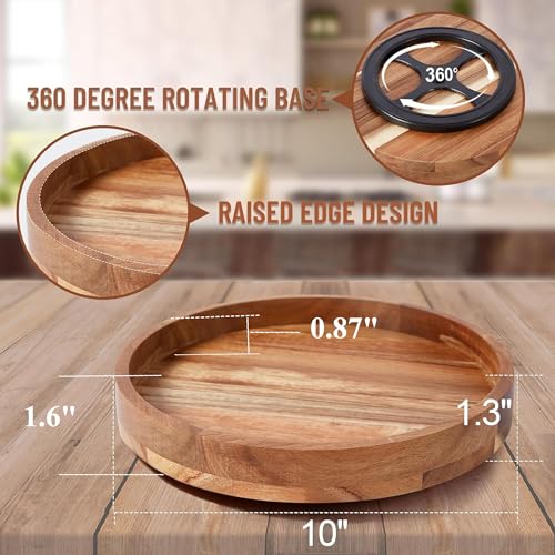 ACIAZAAZ - منظم ليزي سوزان من خشب الاكاسيا 25.4 سم للخزانة، قرص دوار ليزي سوزان لطاولة المؤن، حاوية تخزين القرص الدوار للمطبخ