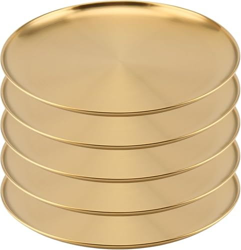 Generic - أطباق ذهبي فولاذ مقاوم للصدأ 304 18/8 قابلة لإعادة الاستخدام وآمنة للاستخدام في غسالة الأطباق للبالغين، أطباق دائرية بمقاسين 23-26 سم لتقديم الطعام والحلويات والتخييم من 10 قطع