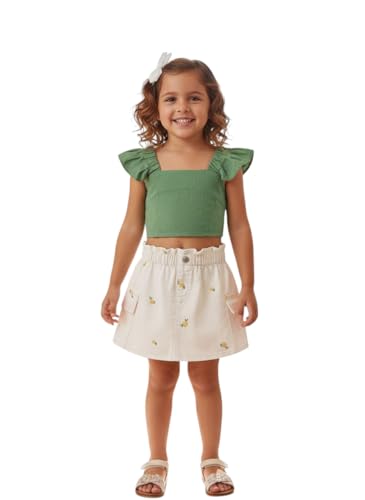 Generic - طقم خروج صيفي بناتي شورت جبردين خامة قطنية متميزة ابيض مطرز برسمة صغيرة .تيشرت توب قطن١٠٠% زيتي 4سنوات.
