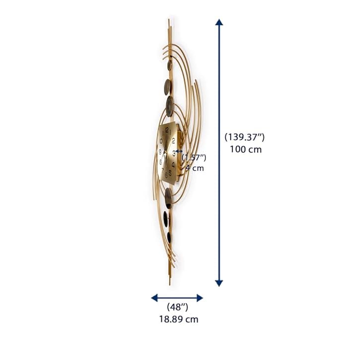 • الأبعاد: ساعة حائط كبيرة الحجم رائعة، يبلغ ارتفاعها 1 م وعرضها 48 سم، مما يجعلها إضافة جريئة لأي غرفة.