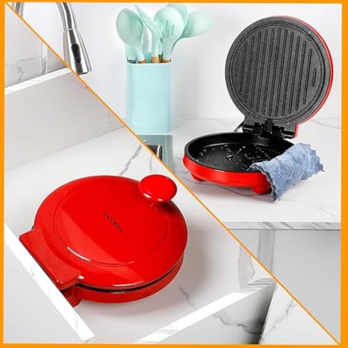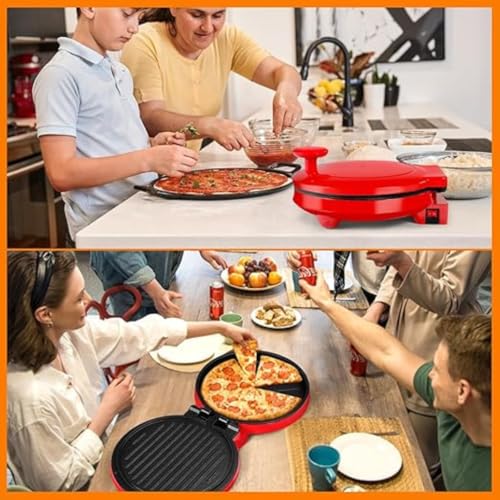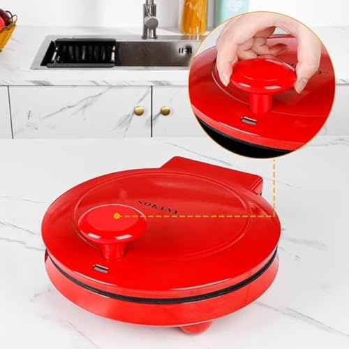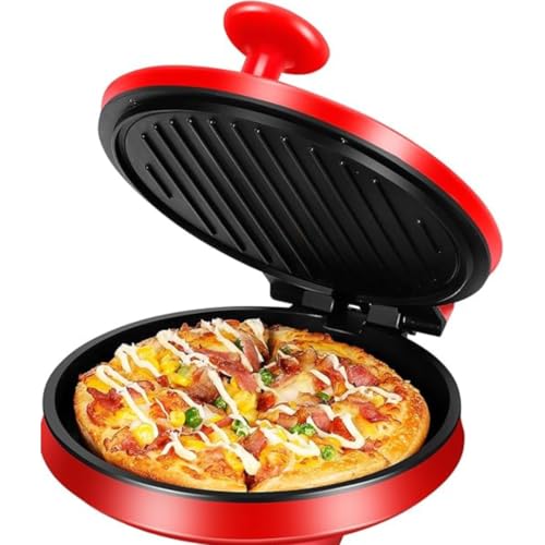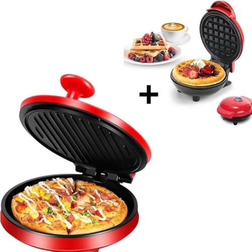 عام - ماكينة صنع بيتزا كهربائية بقدرة 1000W 08013 باللون الأحمر بقطر 23 سم مع ماكينة ميني وافل هدية بقدرة 350W باللون الأحمر