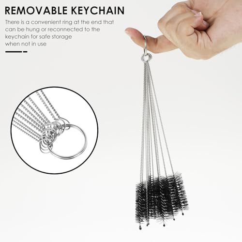 - [ما تحصل عليه] تتضمن العبوة مجموعة واحدة من 10 فرش بقطر مختلف على حلقة مفاتيح قابلة للإزالة. من المريح تعليقها أو الحفاظ عليها آمنة في حلقة المفاتيح.
