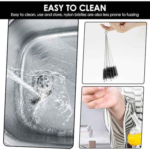 LGHWKETH - مجموعة فرش تنظيف الزجاجات من 10 قطع من النايلون مع شريط من النايلون، مجموعة فرش غسيل انابيب من النايلون، مجموعة فرش لزجاجات الحليب والاكواب والقش، منظف الانابيب الزجاجية للمنزل والزجاجات والمطبخ
