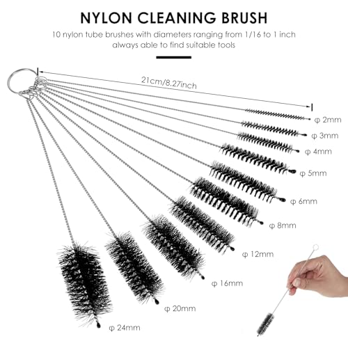 - [مادة جيدة] مصنوعة من مادة النايلون، مجموعة الفرش هذه آمنة لتنظيف الأوعية والماصات. يمكنها أيضًا تنظيف أغراضك مثل النظارات والمجوهرات والهواتف الخلوية.