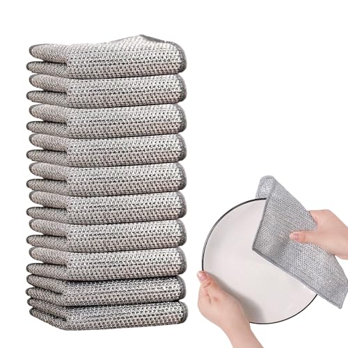 Jezioro - مجموعة من قطع قماش غسيل الصحون سلكية متعددة الأغراض للاستخدام الرطب والجاف تنظيف غير قابل للخدش مساعد المطبخ شبكي المايكروفايبر متعدد الاستخدامات 10 جيزورو