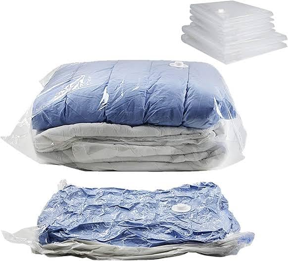 - توفير المساحة: بواسطة تفريغ الهواء وإحكام إغلاق أكياس تخزين الملابس المفرغة من الهواء، يمكنك توفير ما يصل إلى 80% من الحجم. باستخدام الأكياس المفرغة من الهواء يمكنك تخزين الملابس وملايات السرير والبطانيات، كما يمكنك أخيرًا استخدام المساحة في خزانة ملابسك مرة أخرى وتخزين كل ما تحتاج إليه في صندوق السرير الخاص بك.