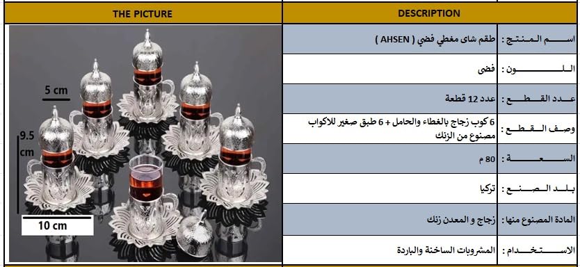 - طقم شاى مغطي فضي ( AHSEN )