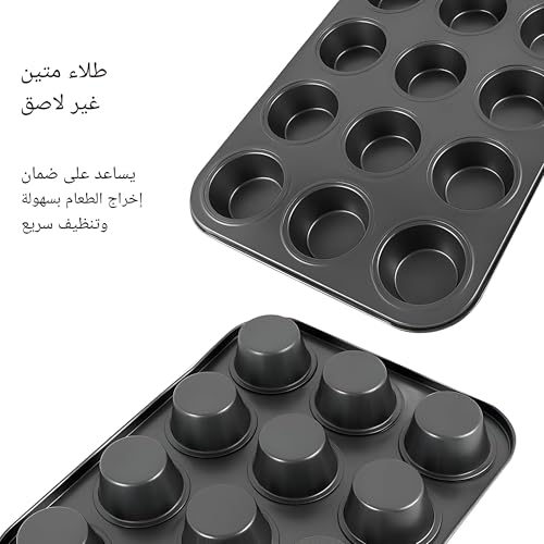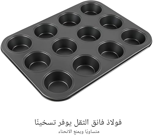 - صينية المافن هذه المكونة من 12 كوب تتعامل بكفاءة مع الخبز على دفعات، مع حرارة موزعة بالتساوي للحصول على نتائج ثابتة، مما ينتج مافن مقرمش أو كب كيك في كل مرة، مما يجعلها أداة أساسية لعشاق المخابز والخبازين المنزليين على حد سواء.