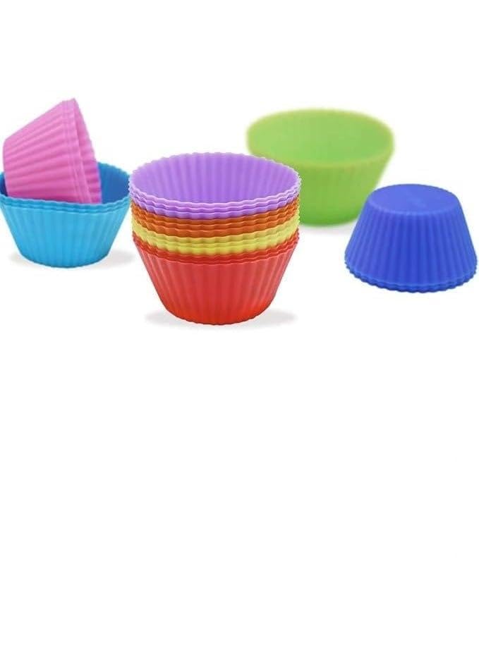 GENERIC - مجموعة قوالب مافن سيليكون قابلة لاعادة الاستخدام من 12 قطعة، قوالب مافن غير لاصقة، جاهزة لصنع المافن والحلوى اللذيذة، متعددة الالوان