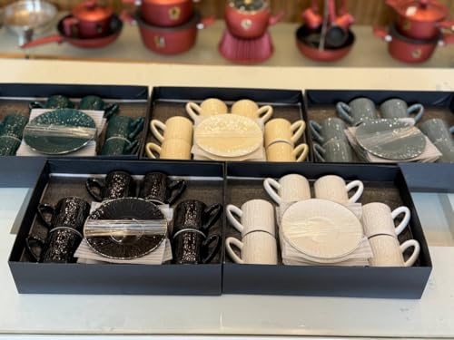 - 【ستة أكواب وصحون】تتضمن مجموعة القهوة الكاملة المكونة من 12 قطعة ستة أكواب مطابقة وستة أطباق متناسقة توفر حلاً متوازنًا وعمليًا لخدمة الضيوف أو أفراد الأسرة مع إنشاء إعداد طاولة موحد بصريًا يزيل القطع غير المتطابقة ويعزز التنظيم مما يجعله مثاليًا لاستراحات القهوة والزيارات الاجتماعية أو استضافة اللحظات التي تتطلب الراحة والعرض الأنيق. ️