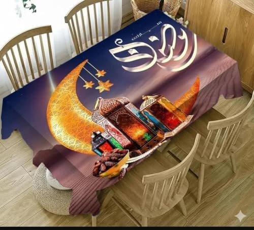 Generic - مفرش طاولة رمضان من الجلد الثقيل بنقوشات فنية بتصميم رمضان كريم مقاس 1.40 × 2.20 م