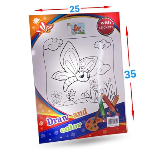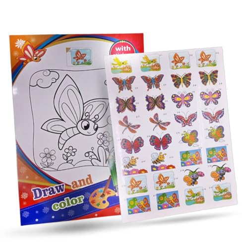 Generic - دفتر تلوين ،16 رسمه+32 استيكر خامه عاليه دفتر احترافي مناسب للكبار والاطفال الموهوبين متعدد الأشكال ممتع جدا (ابيض فراشات)
