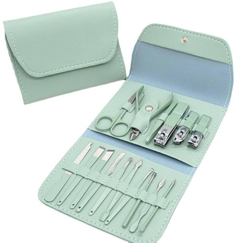 Generic - طقم مبرد اظافر أدوات مانيكير مكونة من 16 قطعة تتميز بمقص أظافر أخضر وقصاصات أظافر، مصممة للعناية بالأظافر بشكل احترافي وفي المنزل