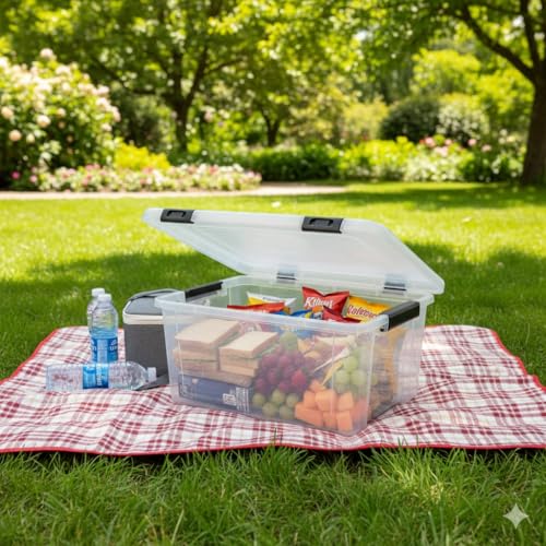 Generic - صندوق تخزين بلاستيكي شفاف سعة 16 لتر، مع مقابض قفل آمنة، قابل للتكديس، متعدد الاستخدامات