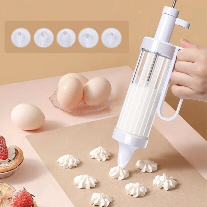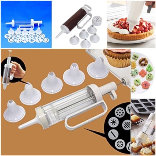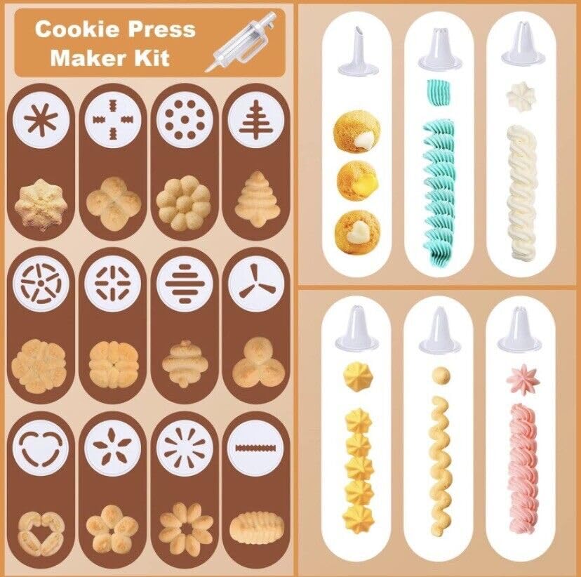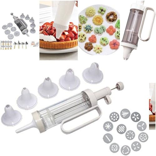 - مجموعة أدوات ضغط البسكويت الجديدة 18 في 1 ومسدس تزيين الكيك مع مجموعة المقبض مكونة من 6 قطع من أطراف تزيين القمع ومسدس واحد