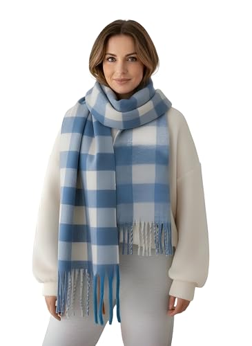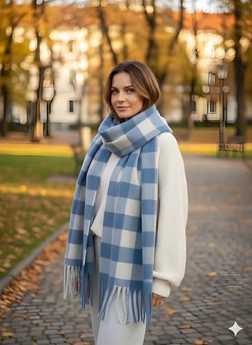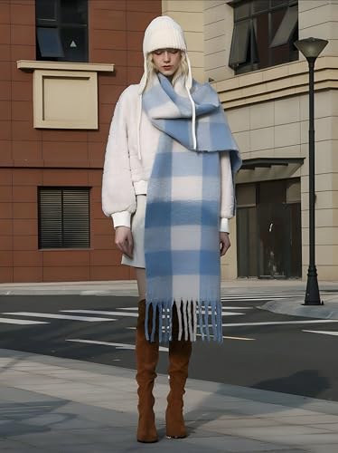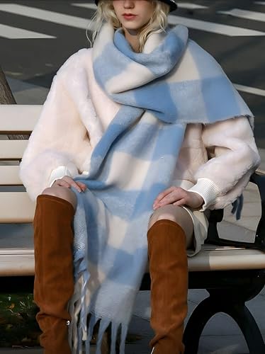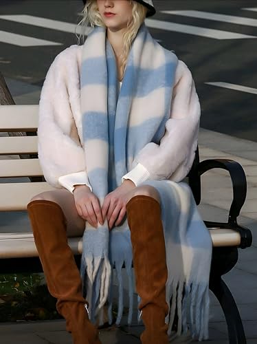 Generic - وشاح متعدد الالوان، رقبة شتوية دافئة من الصوف السميك محبوك بشراشيب سميكة، وشاح شتوي كوفية كبيرة حريمى شتوى متعددة الالوان