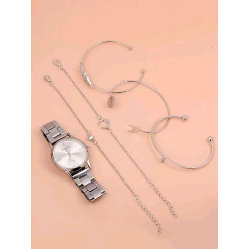 Generic - ساعة كوارتز بمؤشر دائري و5 اساور - لون ذهبي