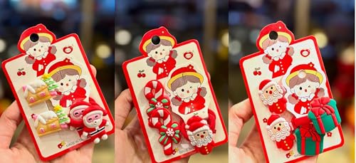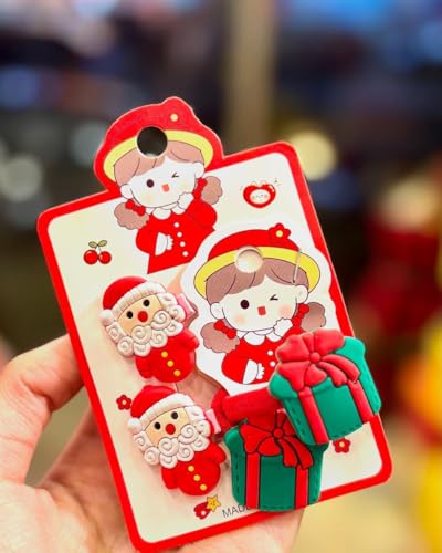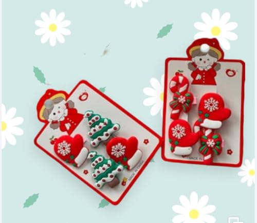 - 2 كارت توك أستك + كلبسات للأطفال الكارت 8 قطع 4 توكة استك و4 كلبس بتصمبمات الاحتفال بالكريسماس ورأس السنة