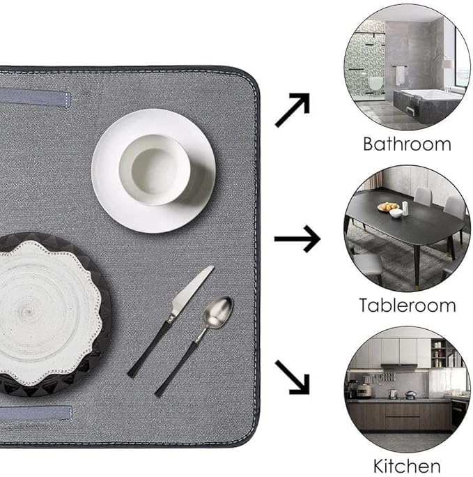 - بساط ماص: مصنوع من المايكروفايبر عالي الامتصاص، يحمي سطح المطبخ من الخدوش وتجمع المياه