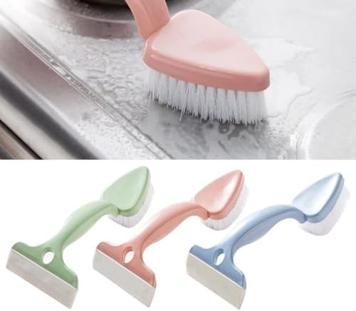 Generic - فرشة دعك وتنظيف 2 في 1 بفرشاة قوية ومساحة مطاطية لسحب المياه وتنظيف البلاط والأحواض والبوتاجاز بتصميم عملي ومتين متعدد الالوان