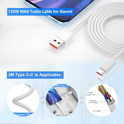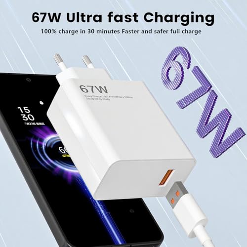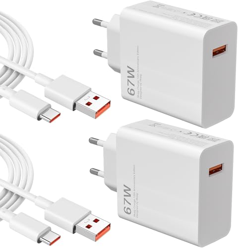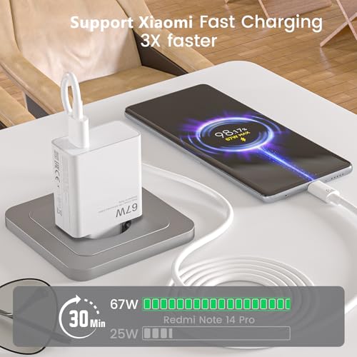AOKUTDA - شاحن تربو سريع بمنفذ USB بقوة 67 وات مع كابل USB سي 6 أمبير لشاومي 14T 13T شبكة الجيل الخامس 5G وشاومي ريدمي نوت 15 14 13 12 11 10 برو شبكة الجيل الخامس 5G و14/13/12/11 الترا/ 12 لايت/ 12X، قطعتين