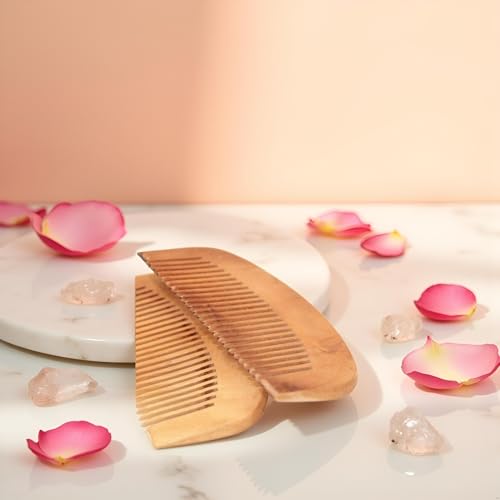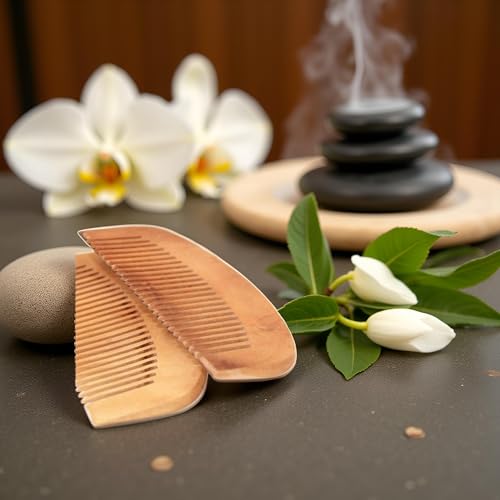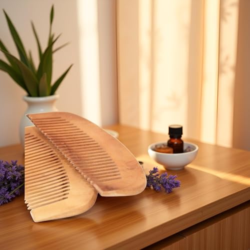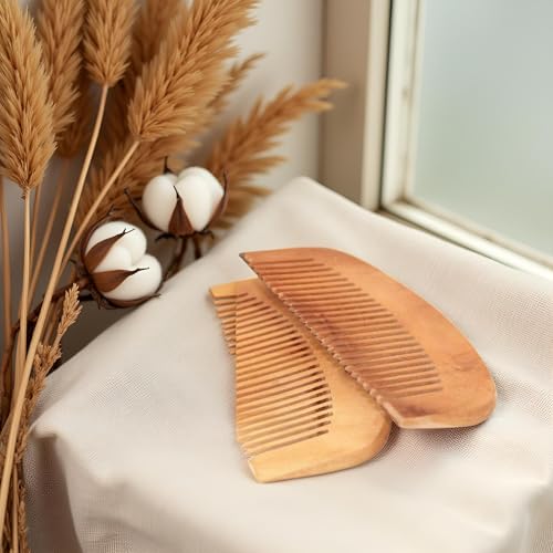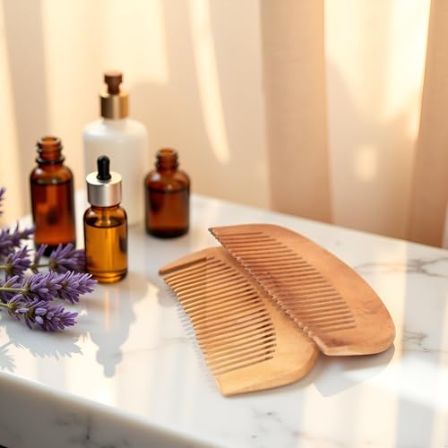 - أمشاط خشبية مصنوعة يدويًا: تتضمن هذه المجموعة مشطين من خشب الخوخ البني عالي الجودة مصممين لفك التشابك والتدليك اللطيف.