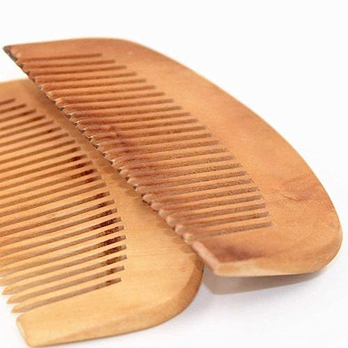 Enyolidimk - مشط خشبي بني مصنوع من خشب الخوخ الطبيعي بأسنان دقيقة، مضاد للكهرباء الساكنة، مشط خشبي مناسب لتدليك الشعر واللحية، أدوات فك تشابك الشعر، إكسسوارات للعناية بالشعر، 2 قطعة