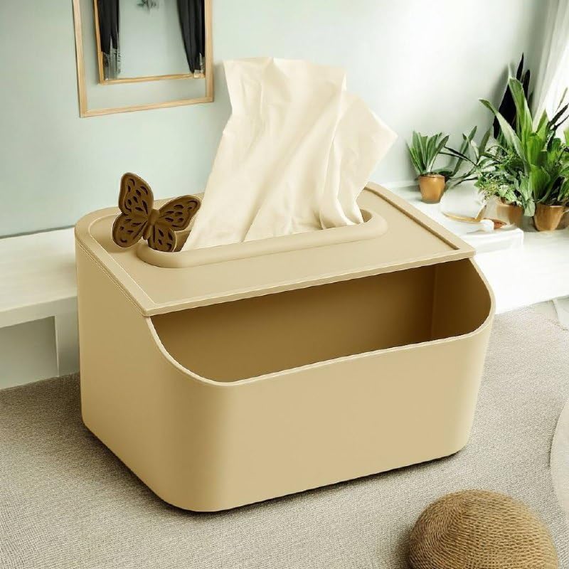 • منظم ذكي متعدد الوظائف: بفضل تصميمها المقسم، يمكنكِ استخدامها كحافظة مناديل ومنظم لأجهزة التحكم (الريموت) أو النظارات، مما يساعدكِ في الحفاظ على ترتيب الغرفة ومنع ضياع المقتنيات الصغيرة.