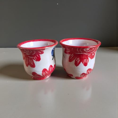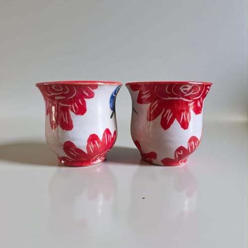 Generic - 2 فنجان رسم يدوي 150 ملي بشكل مميز ، آمن للاستخدام في الميكروويف، مصنوع يدويًا من الفخار mv-463