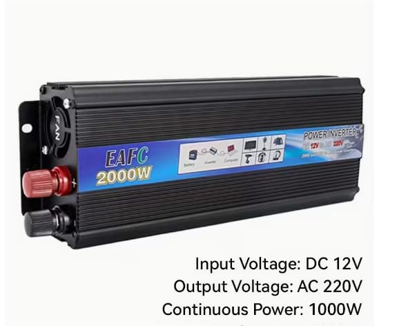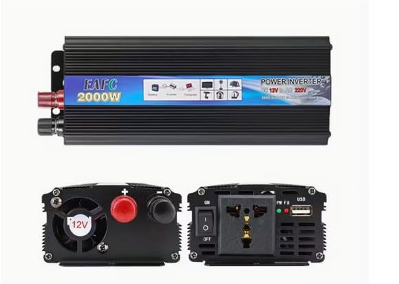 Generic - محول طاقة 2000 واط، تحويل 12 فولت تيار مستمر إلى 220 فولت تيار متردد، محمول للسيارة، متعدد الوظائف، مناسب للسفر والتخييم، متوافق مع مقابس الاتحاد الأوروبي