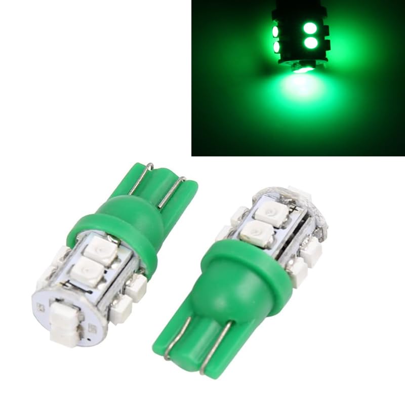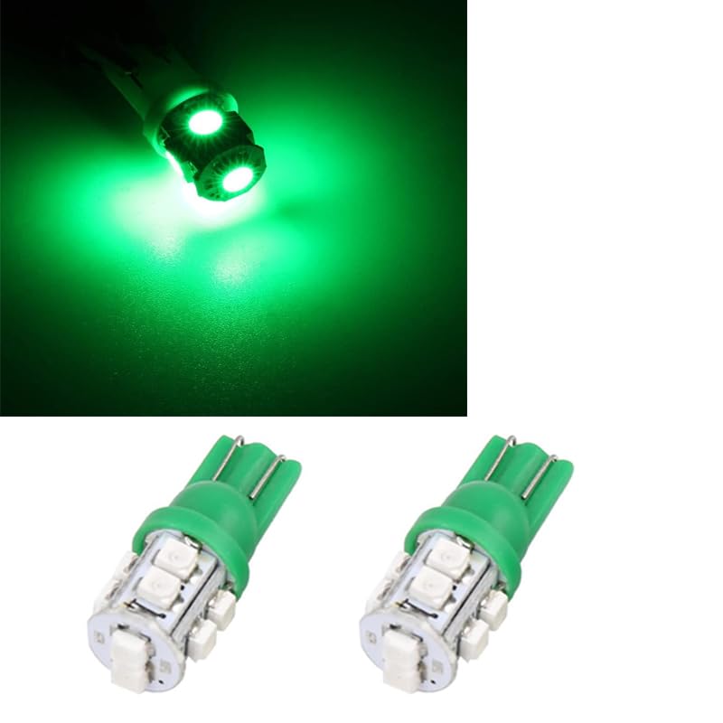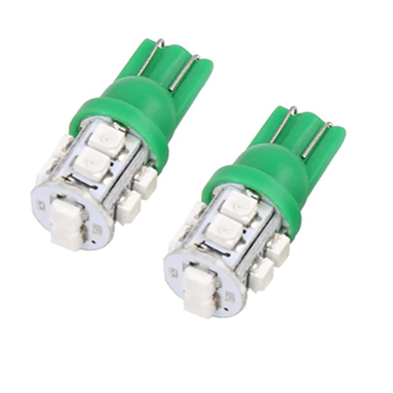 Generic - مصابيح LED SMD T10 قاعدة اسفينية لمصباح وقوف السيارة/ مؤشر جانبي/ مصابيح لوحة ارقام (اضاءة اخضر ، 10 ليد ، 2 قطعة ) - من كابرمصر 2020