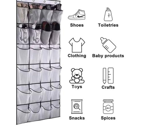Generic - منظم أحذية وملابس معلق خلف الباب، 24 جيب، شبكي شفاف مع إطار أسود، للخزانة والباب