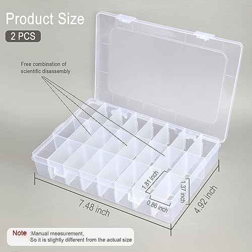 Generic - علبة تنظيم منتجات الحرف اليدوية ومنظم تخزين الخرز مع فاصل قابل للتعديل، بلاستيك، شفاف قطعتين من 24 جزء للتخزين