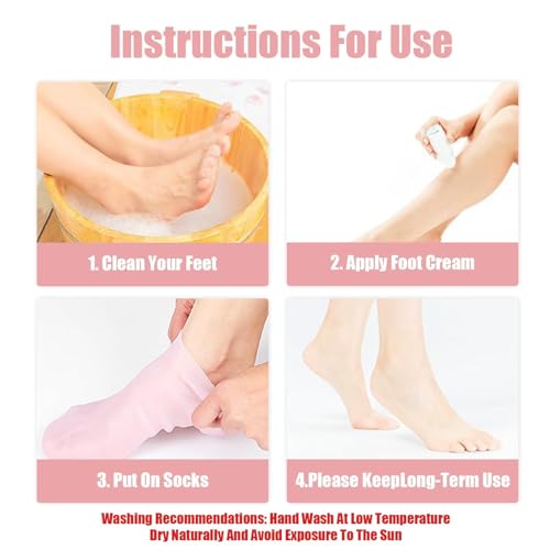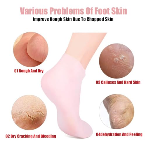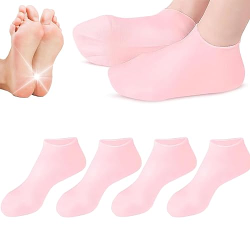Poiykmt - زوجان من الجوارب المرطبة المصنوعة من السيليكون، جوارب سيليكون للاقدام الجافة المتشققة للنساء، جوارب باديكير للسبا واصلاح وتنعيم بشرة القدم الجافة المتشققة (بينك)