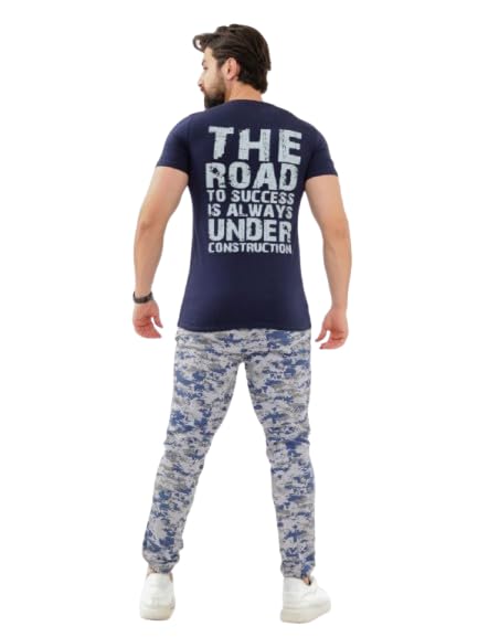 Generic - بيجامه رجالى صيفي - تيشرت قطن سينجل ليكرا و بنطلون بيكا مطبوع - لون كحلى -مقاس 2XL - موديل رقم #: 470-979