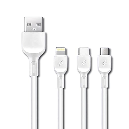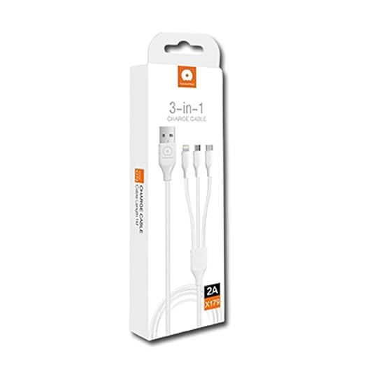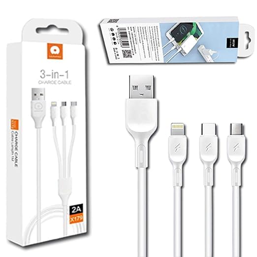 Generic - كابل شحن 3 في 1( 2امبير) فعلي تيب سي .ميكرو . لايتنج طول الكابل 1 متر لون ابيض