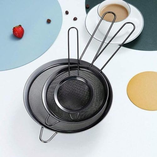 Generic - طقم مصافي 3 في 1 يتضمن مصفاة شاي معدنية بلون أسود بـ 3 مقاسات 8 سم و7 سم و5.7 سم مع مقبض طويل لتصفية القهوة والشاي في المطبخ