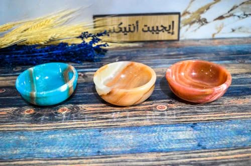 Egypt Antiques - مجموعة من طبق الاباستر 3 ألوان مختلفه ازرق و بيج و بني احمر مقاس 10 سم صناعة يدوي 100% من مصر ANTIX