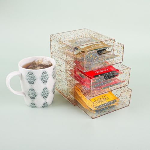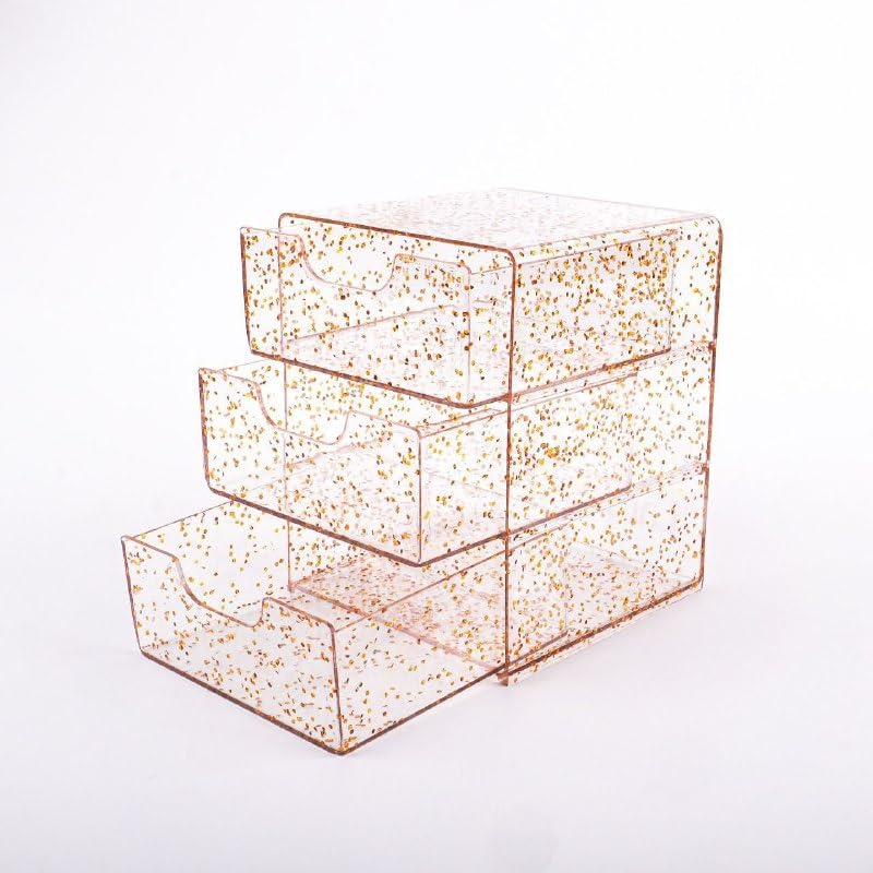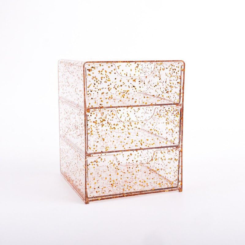 Generic - منظم مكتب 3 ادراج ذهبي – صندوق تخزين للاكسسوارات والمجوهرات والادوات الصغيرة – منظم متعدد الاستخدام بحجم 10×13 سم