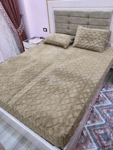 Generic - طقم 3 قطع دفايه سرير فرو استك 160سم-كافيه