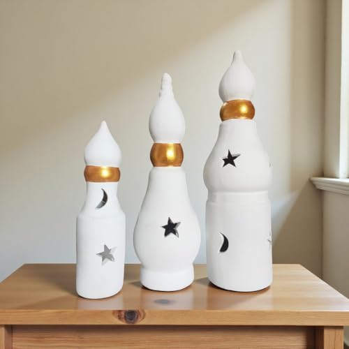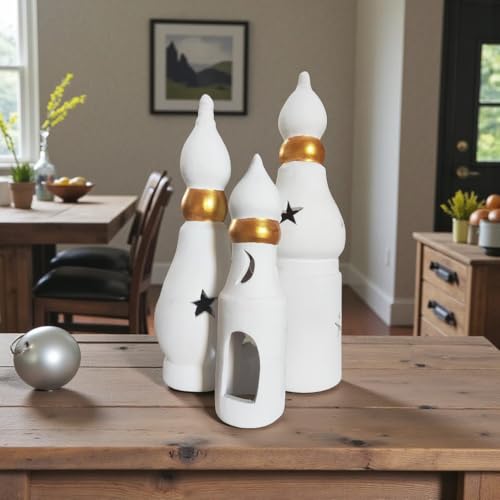 Generic - طقم فوانيس 3 مقاسات بدون الشمع من الفخار للديكورارتفاع 35. 25. 13 -fan10