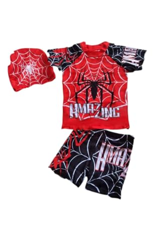 Generic - بدلة سباحة للاولاد مكونة من قطعتين شورت وتيشرت وبونيه اسبيدر مان مستورد وعالي الجودة مقاسات من 3-8 سنوات