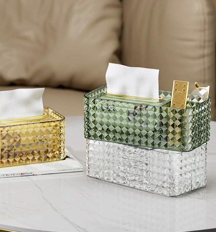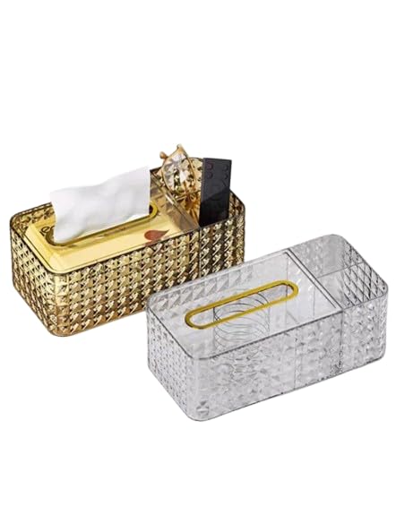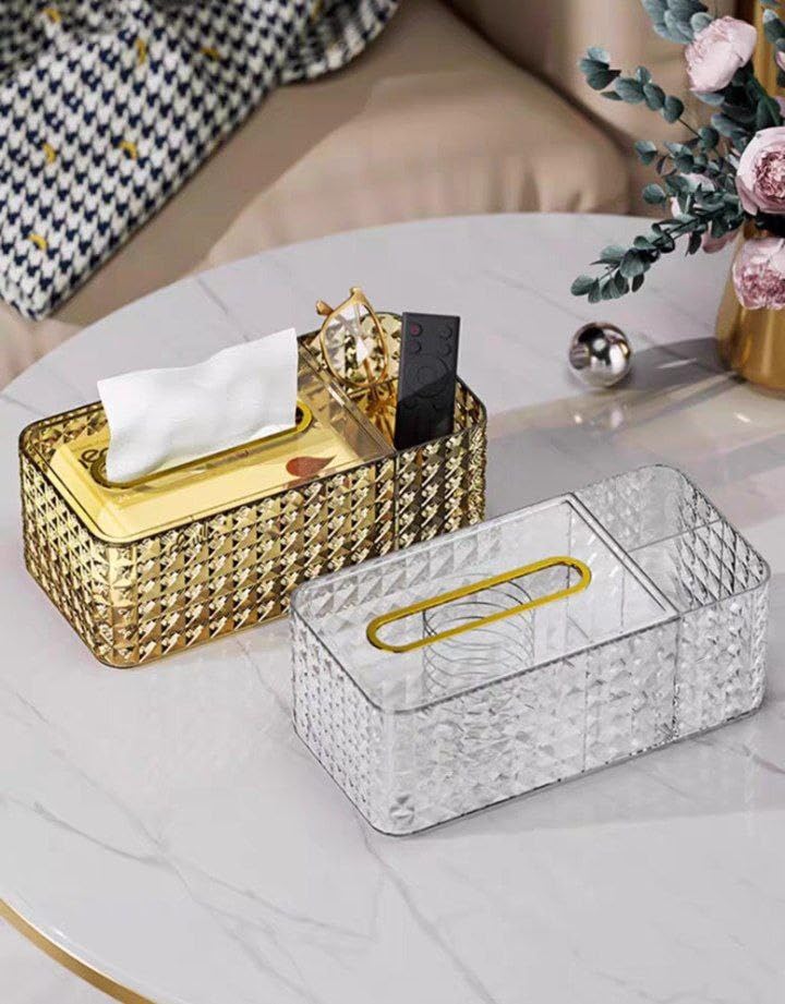 Generic - علبه مناديل سوسته اكريلك مقسمه 3 خانات عمليه وشيك والوانها تحفه CS (جولد)