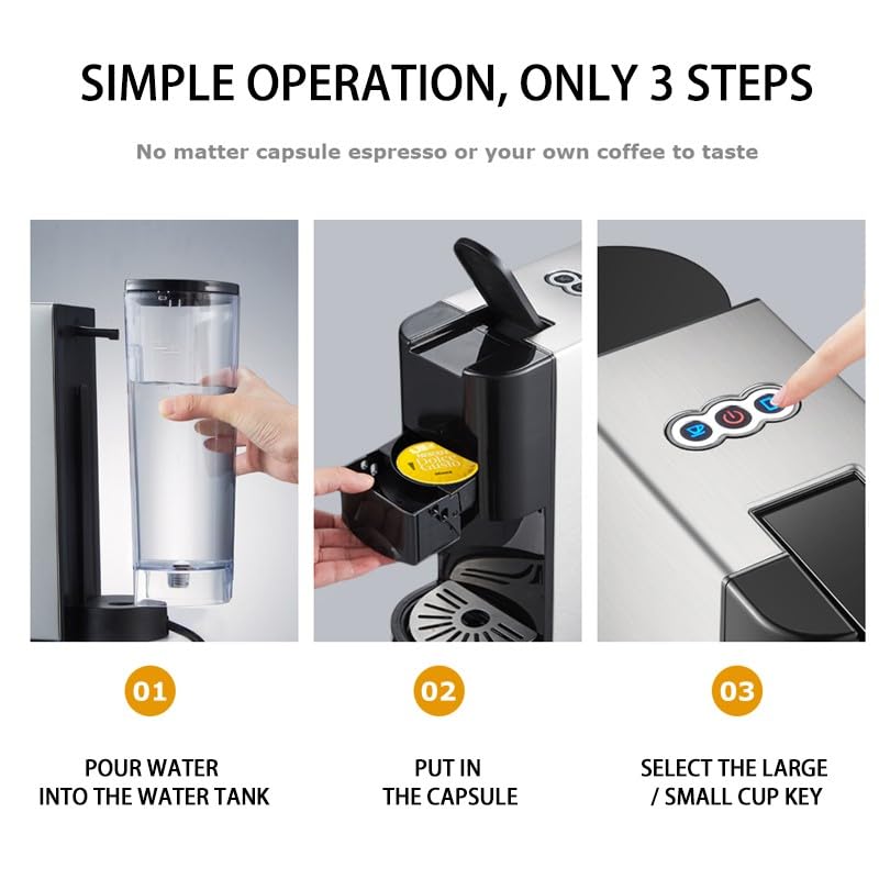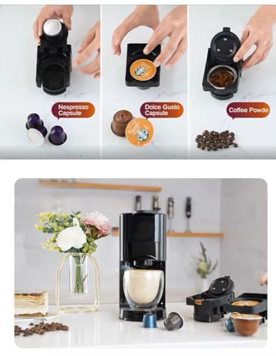 - ✔ نظام 3 في 1 لتحضير القهوة حسب ذوقك تدعم أنظمة كبسولات القهوة القياسية المختلفة بالإضافة إلى القهوة المطحونة، لتحضير أنواع متعددة من مشروبات القهوة بسهولة.